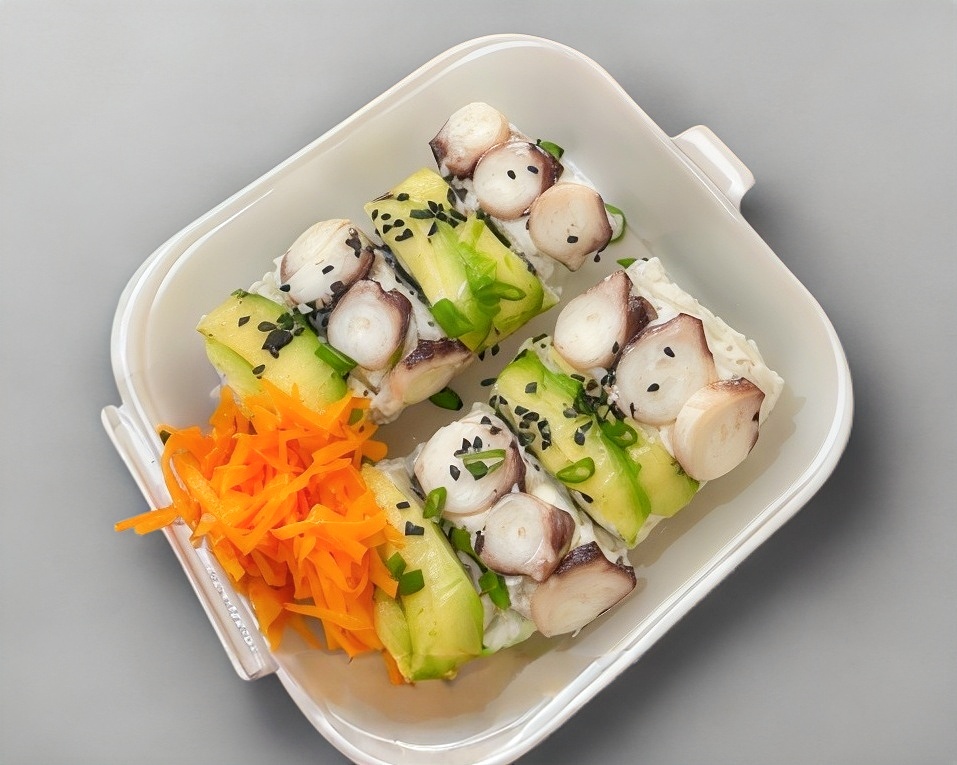 Rollo natural 8 piezas, cubierto de pulpo y aguacate