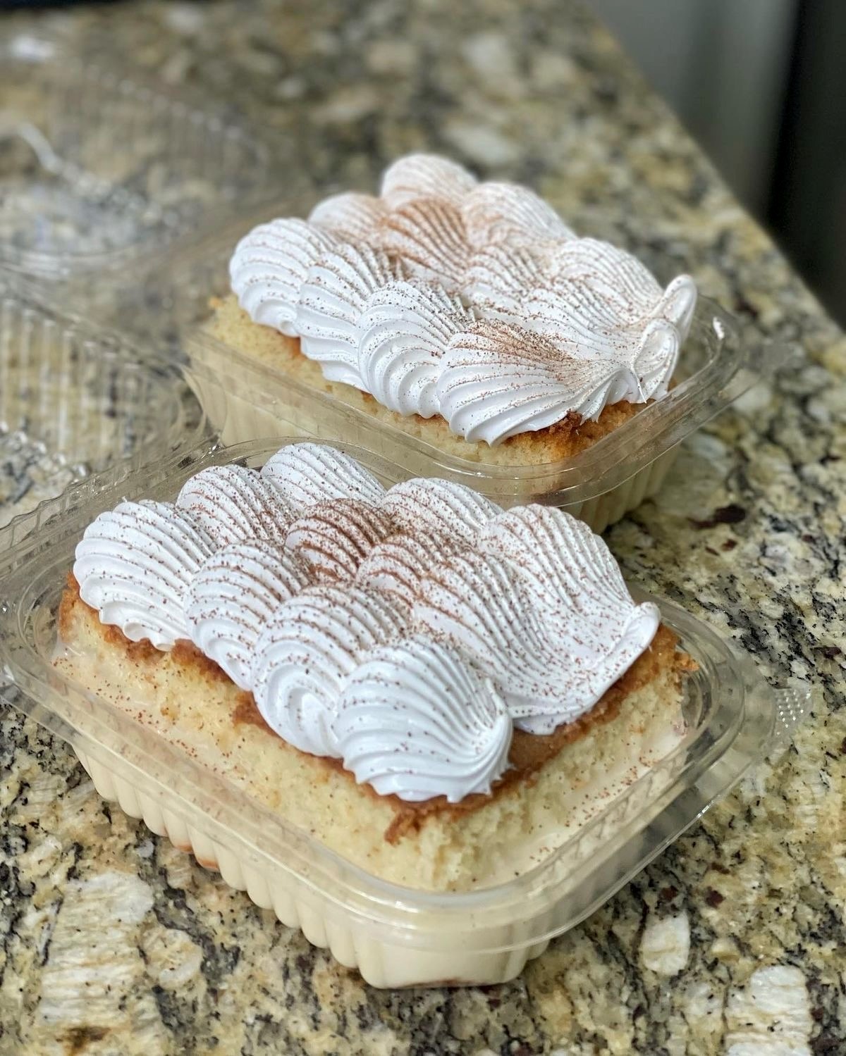Delicioso pastel 3 leches en charola chica, 1 a 2 porciones