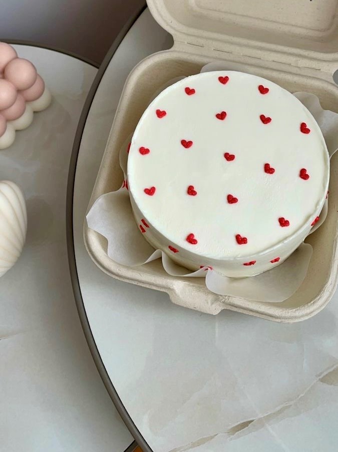 Delicioso pan casero sabor vainilla con relleno a elegir, cubierto con betún y sprinkles de corazón (2 a 4 porciones).