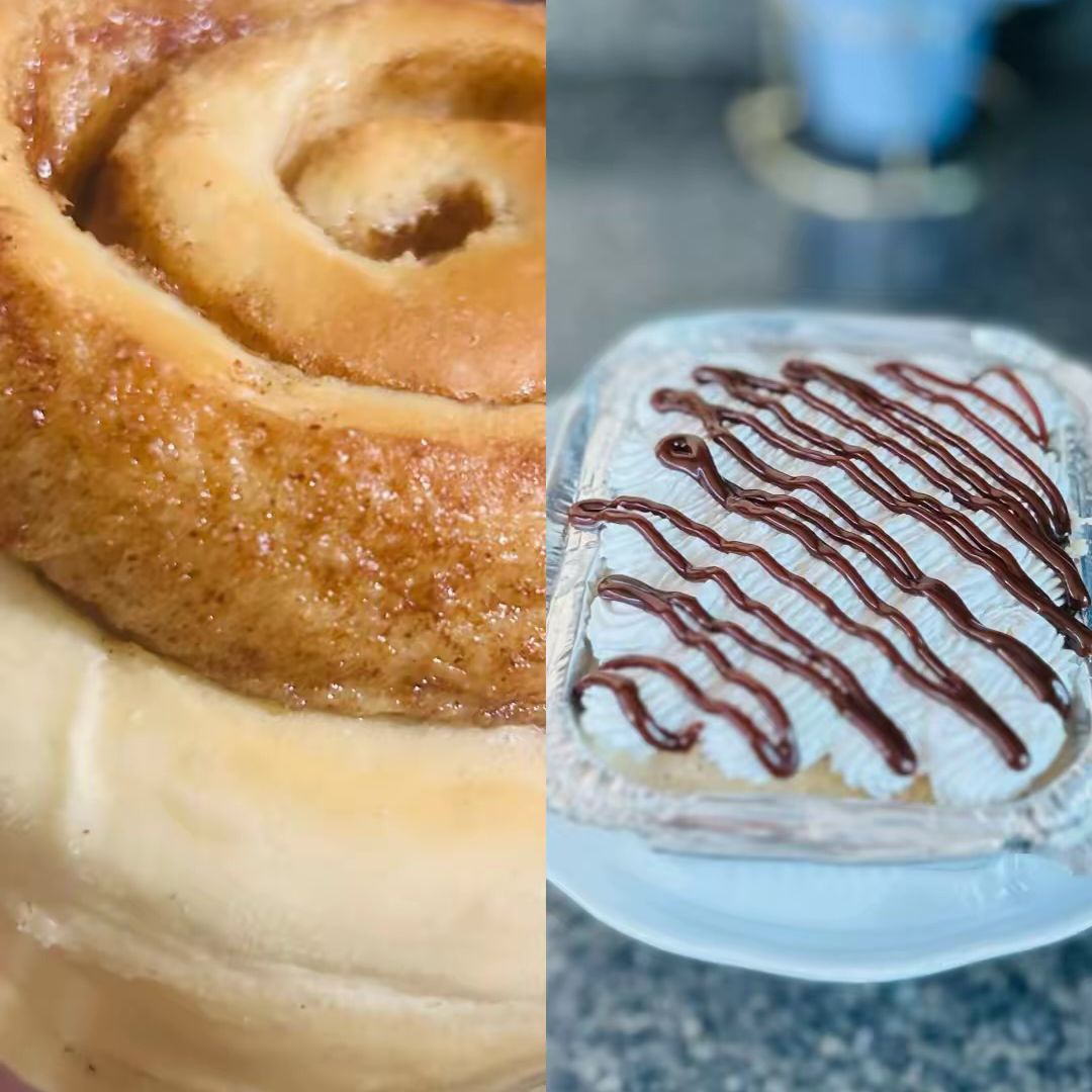 DELICIOSOS ROLES DE CANELA ELABORADOS CON MASA SUAVE Y ESPONJOSA, RELLENOS CON UNA MEZCLA ARTESANAL EQUILIBRADA, AGREGA CON COSTO EXTRA TUS TOPPINGS FAVORITOS.