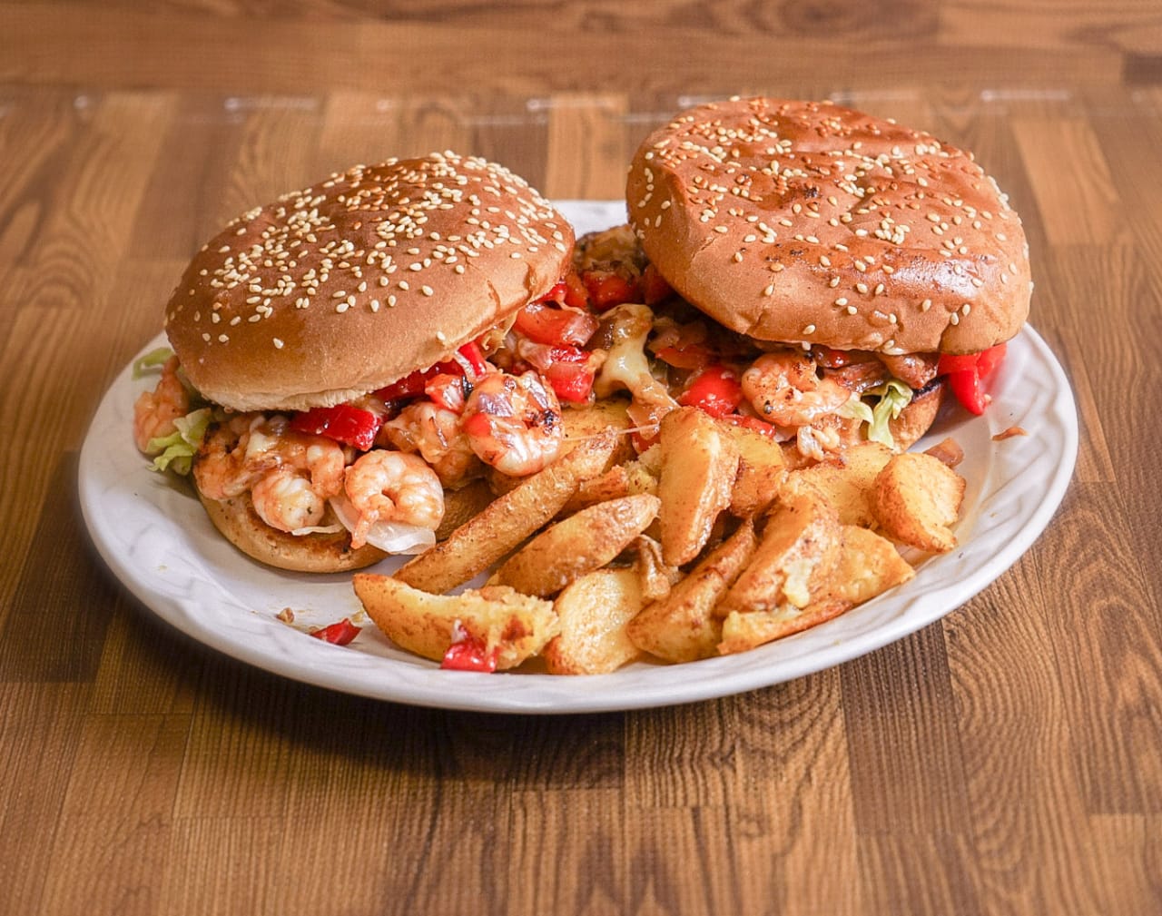 Pescado en trozo, camarón seco, camarón cocido, piña y camarón fresco.