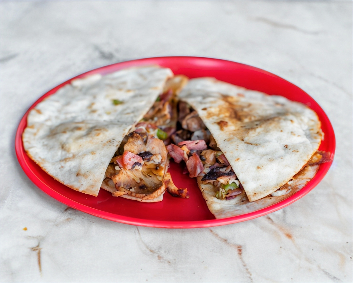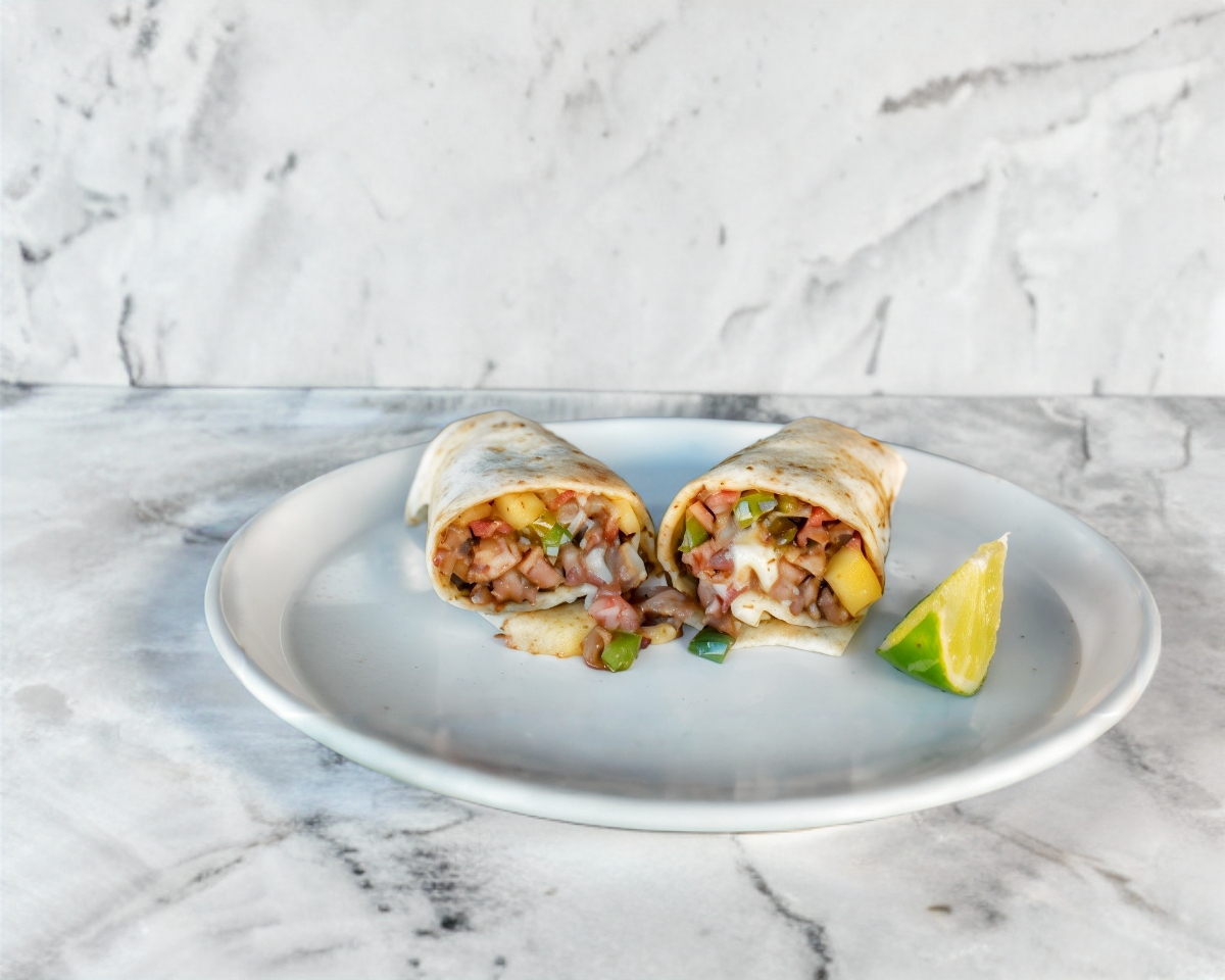 Nuestra deliciosa carne árabe con queso gratinado envuelta en tortilla de maíz.