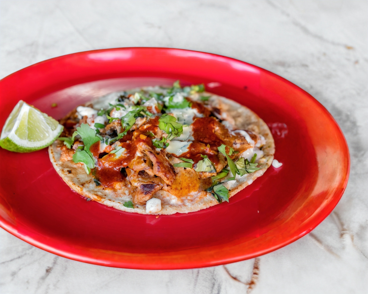 Taco árabe, la especialidad de la casa, incluye salsas. Porción personal.