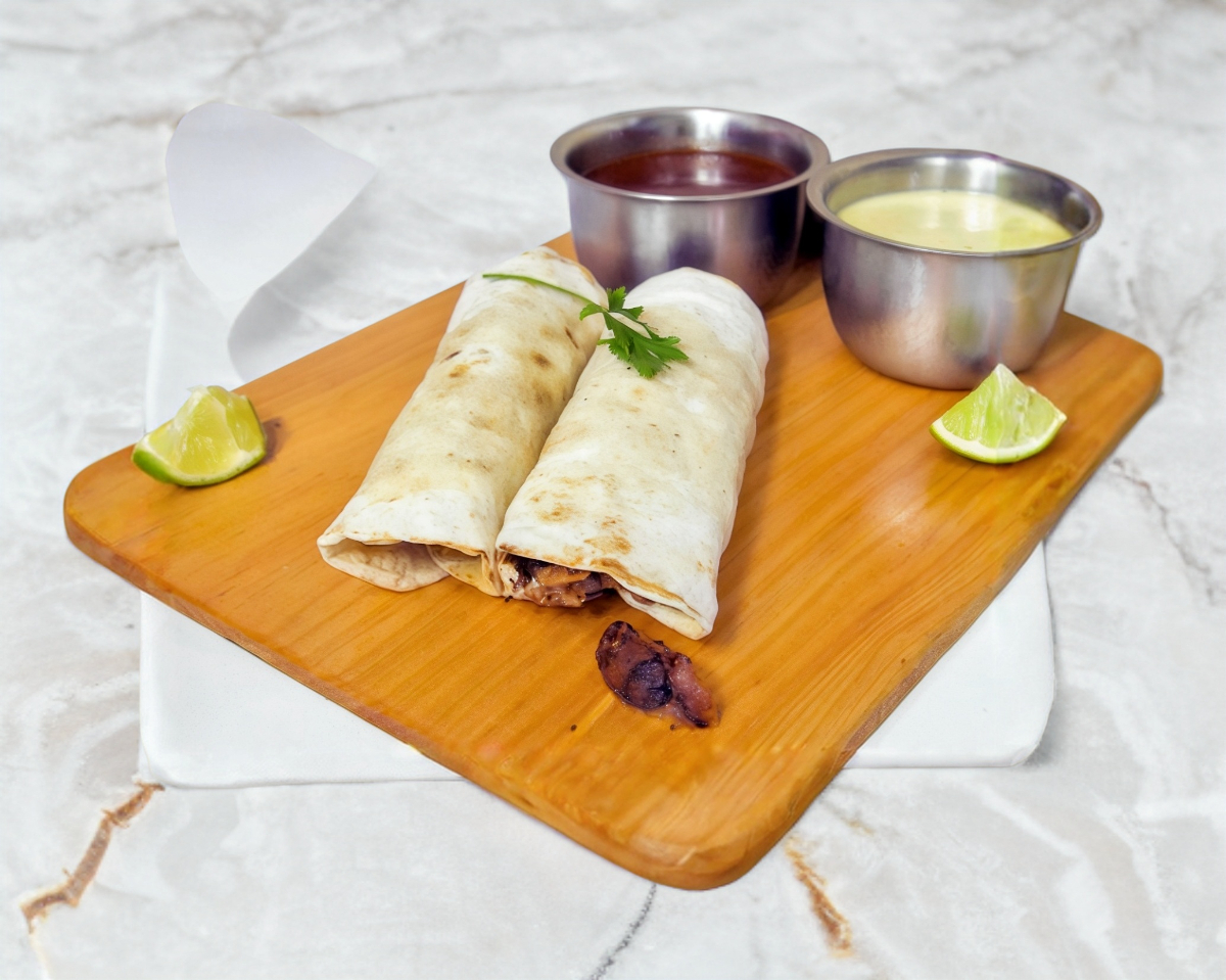 Deliciosa combinación de carne árabe con habanero a la plancha, tocino, pimiento morrón y queso gratinado envuelto en nuestro artesanal pan árabe.