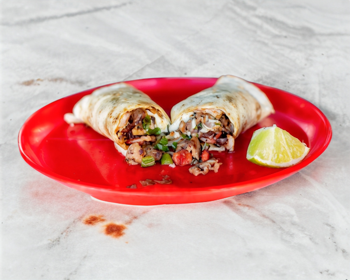 Nuestra deliciosa carne árabe envuelta en tortilla de maíz.