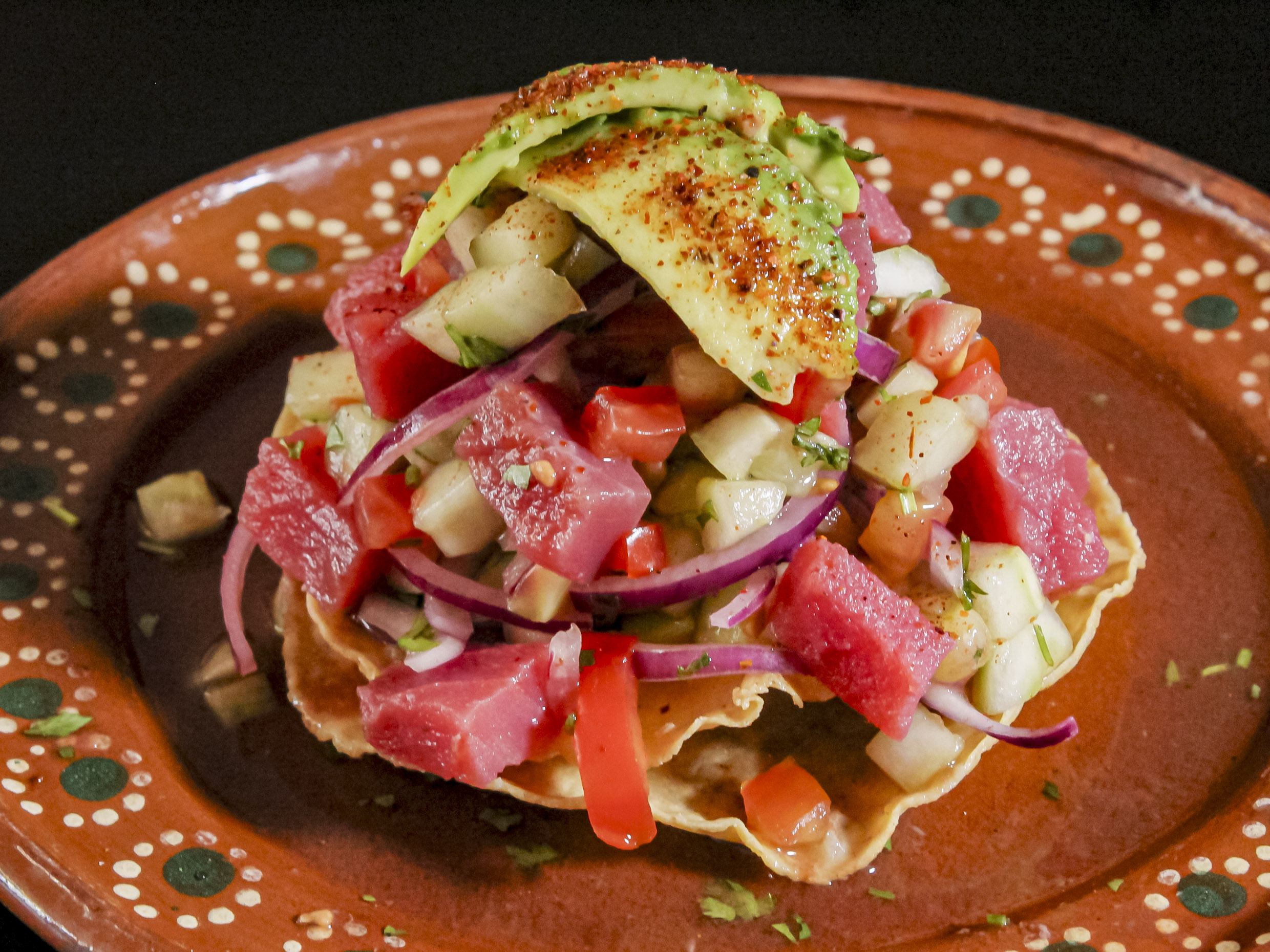 trozos de atun con pepino,cebolla,cilantro y jitomate