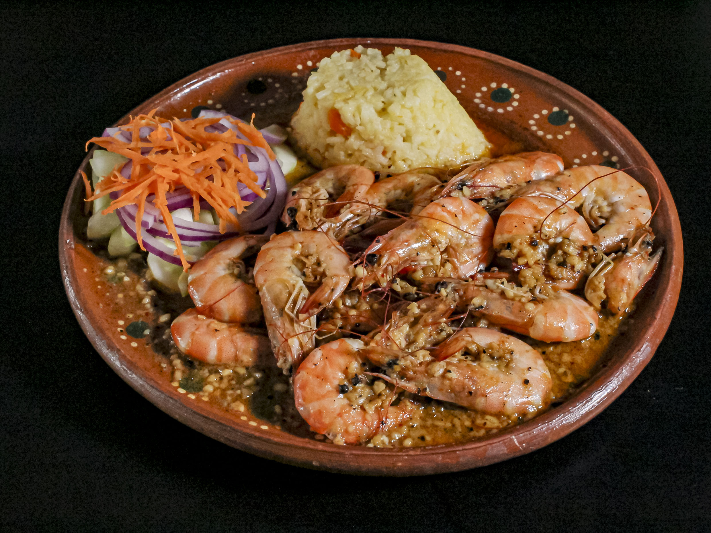 250 gr de camarones a base de ajo y mantequilla con una salsa de 3 picantes