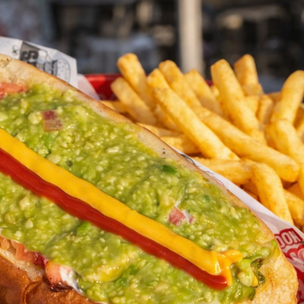 🌭 Dogo Salchicha de pavo enredada en tocino con mucha salsa tipo aguacate y tocino. 🍟 Acompañado de papas a la francesa hasta agotar existencias. 🔥 2x1 válido en establecimiento o para llevar ordenando directamente en el restaurante.