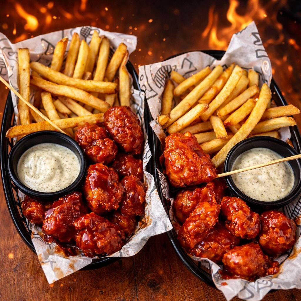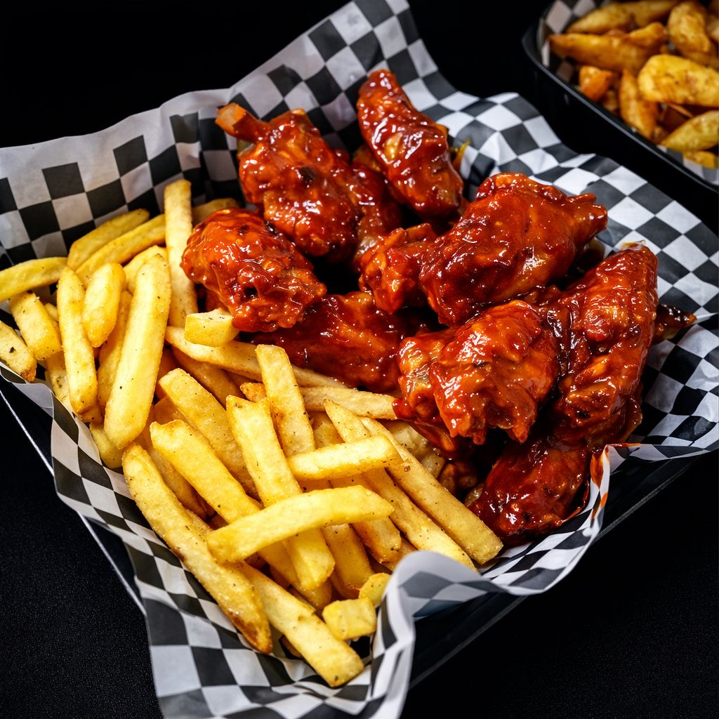 BONELES y papas ala francesa con 2 aderezos
