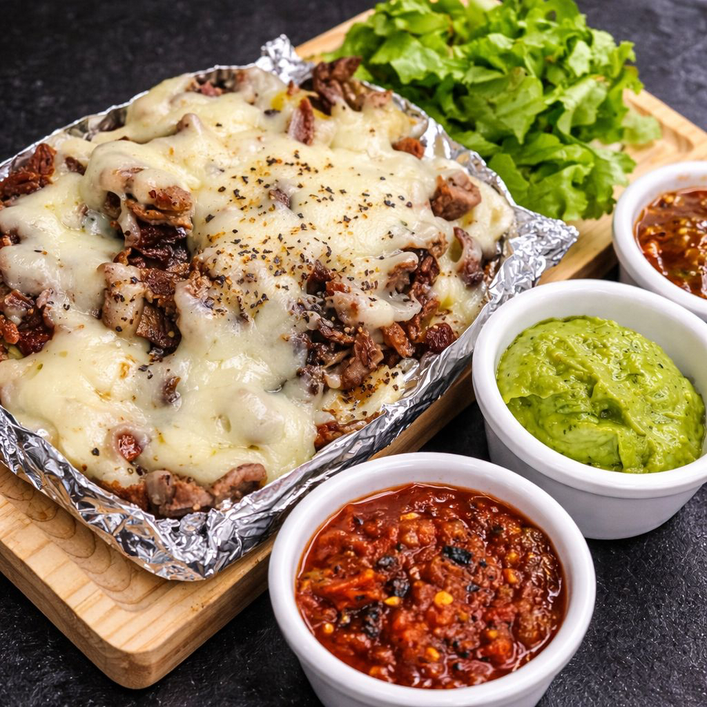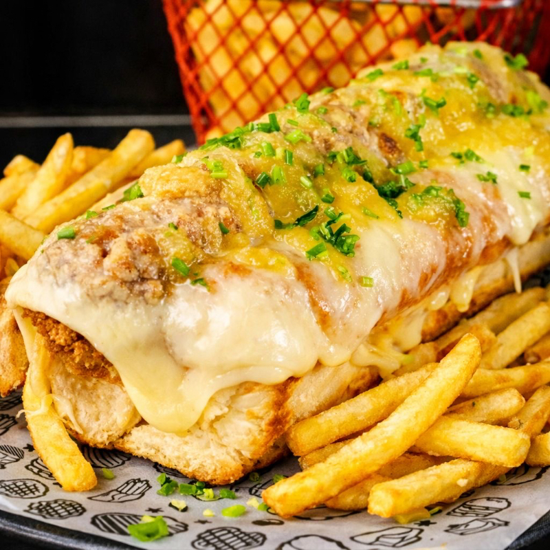𝑶𝒓𝒅𝒆𝒏 𝒅𝒆 𝒑𝒂𝒑𝒂𝒔 𝒂𝒍𝒂 𝒇𝒓𝒂𝒏𝒄𝒆𝒔𝒂, 𝒄𝒐𝒏 𝑸𝒖𝒆𝒔𝒐 𝑵𝒂𝒄𝒉𝒐 𝒚 pedazos de chuleta
