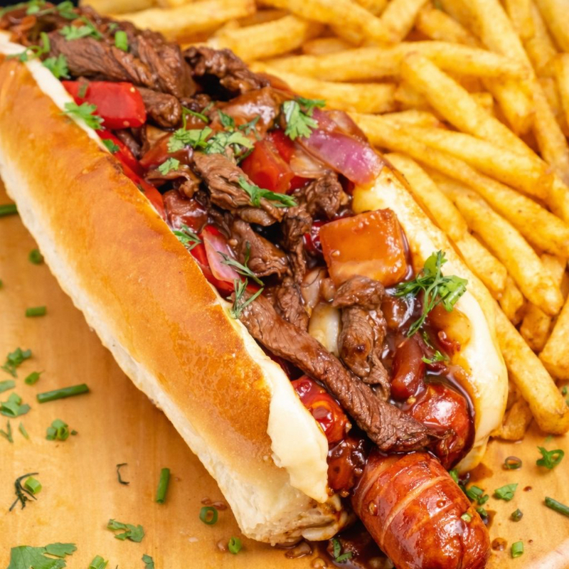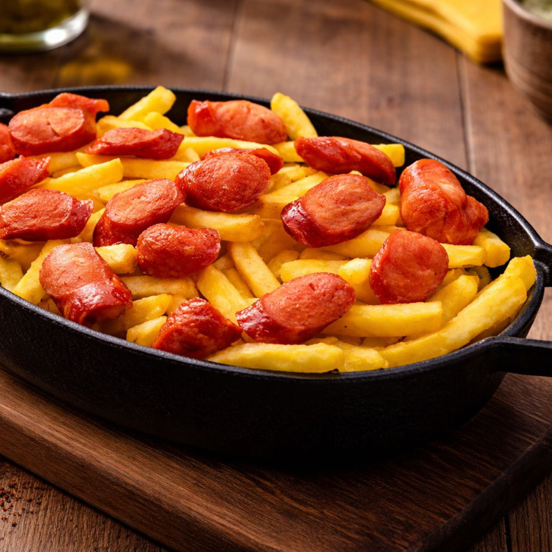 Salchichas con papas ala francesa