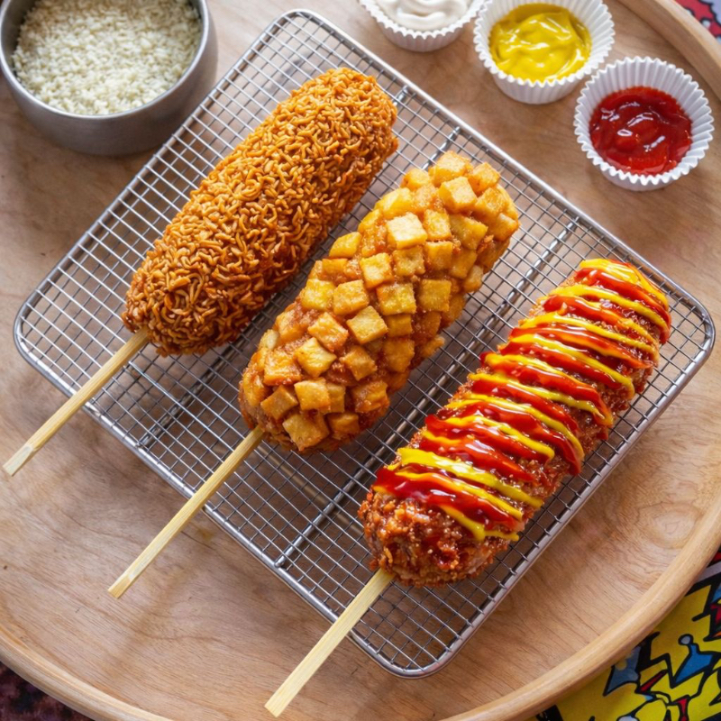 🧀 Banderilla coreana Con queso y salchicha, cubierta en masa especial con pan molido y topping a tu agrado. 🥫 Acompañada de cátsup y crema. 🍟 Papas a la francesa hasta agotar existencias.