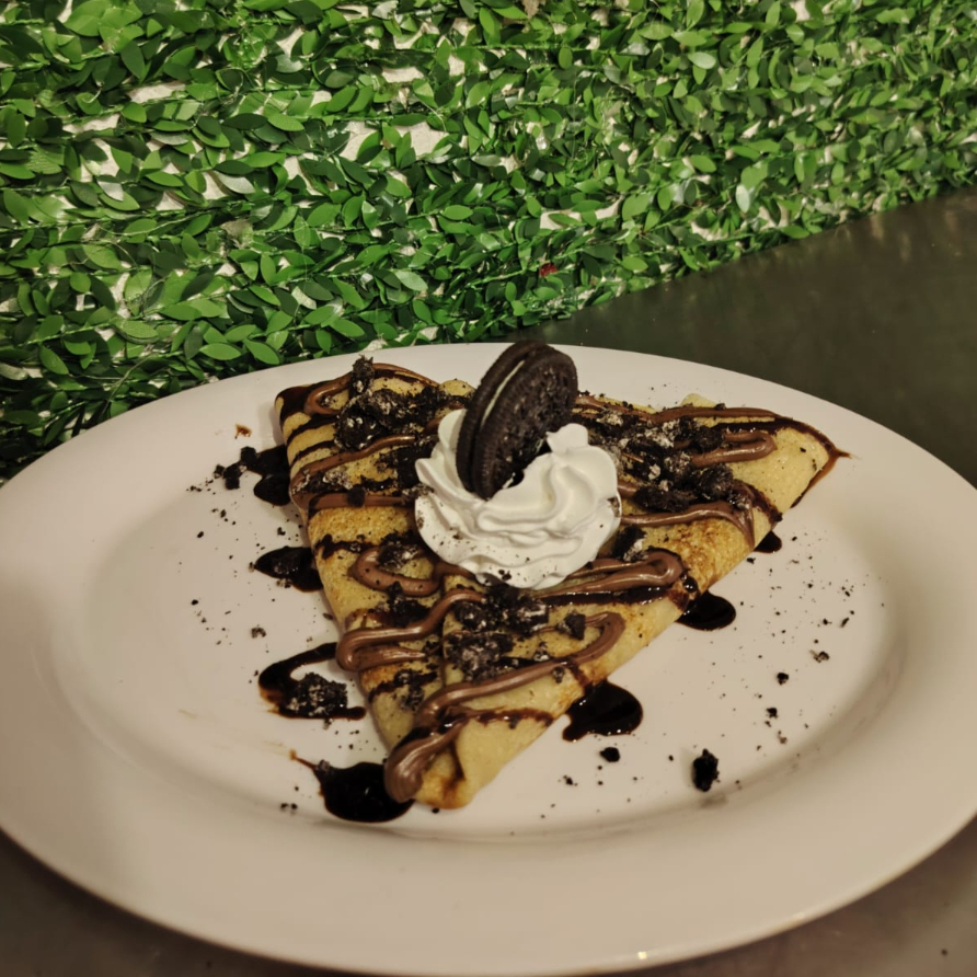 rellena de Nutella y queso crema Philadelphia, con galleta Oreo y un toque de jarabe de chocolate.