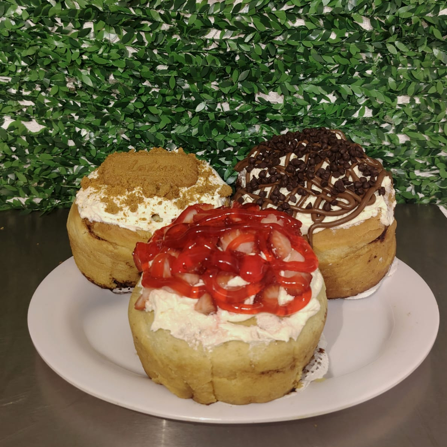 uave rol de canela bañado en 3 leches, con el sabor de tu elección. ¡Irresistible y súper jugoso!