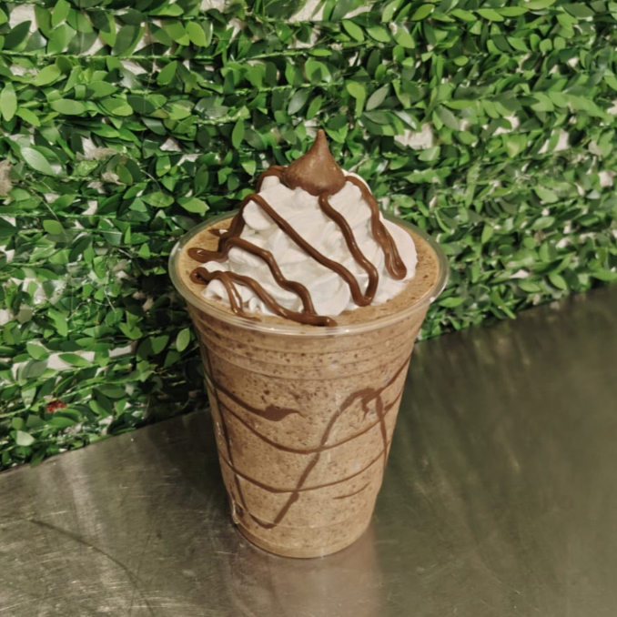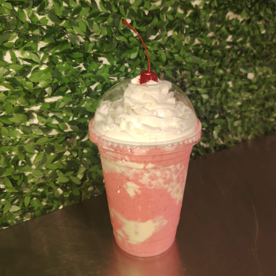 frappé cremoso de fresas mezcladas con leche, suave, refrescante y con el clásico sabor de fresas con crema.