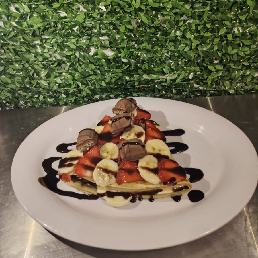 rellena de Nutella y queso crema Philadelphia, con fresas, plátano y trozos de Kinder Delice.