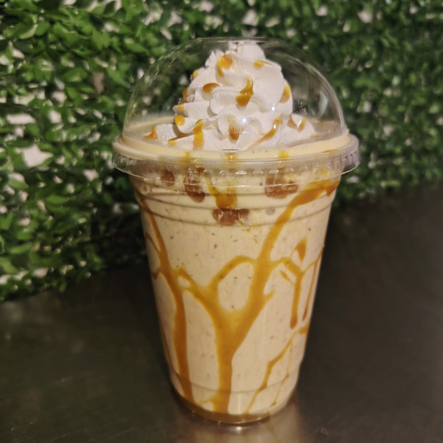 preparado con hielo, leche y dulce caramelo, con un sabor suave y delicioso en cada sorbo.
