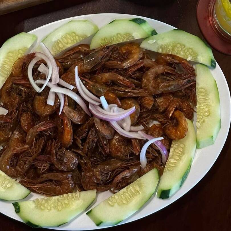 (camaron seco, camaron curtido en limon, pepino y cebolla)