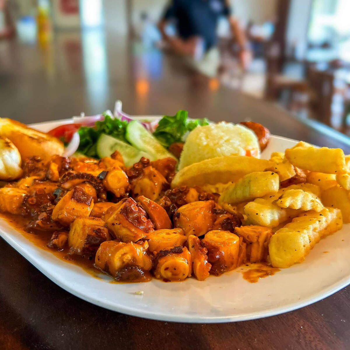 (Pulpo, verdura aparte pepino, jitomate y cebolla)