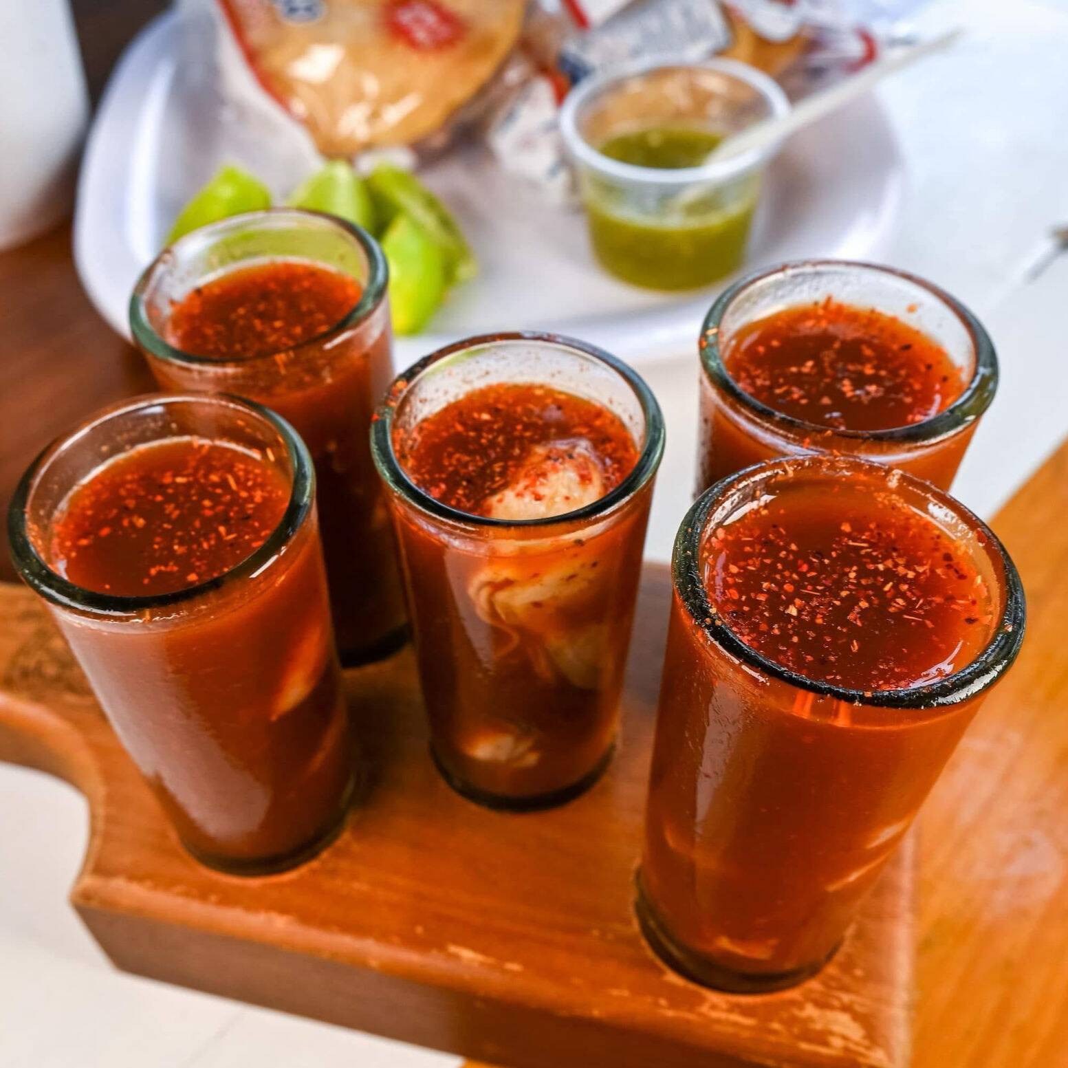 (camaron cocido, ostion, pulpo, callo de hacha con jugo frio de camaron y catsup)-200gr