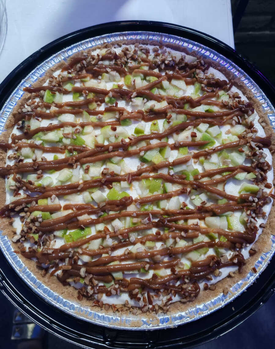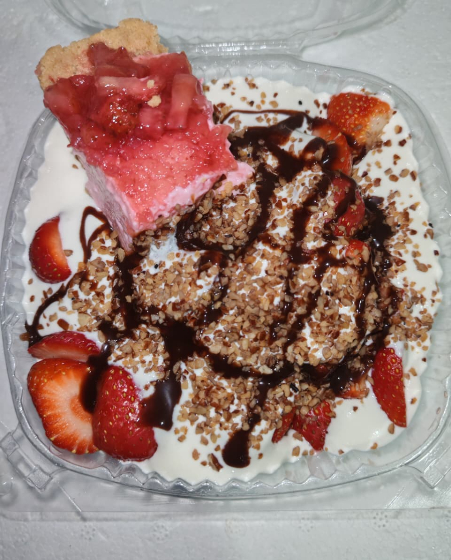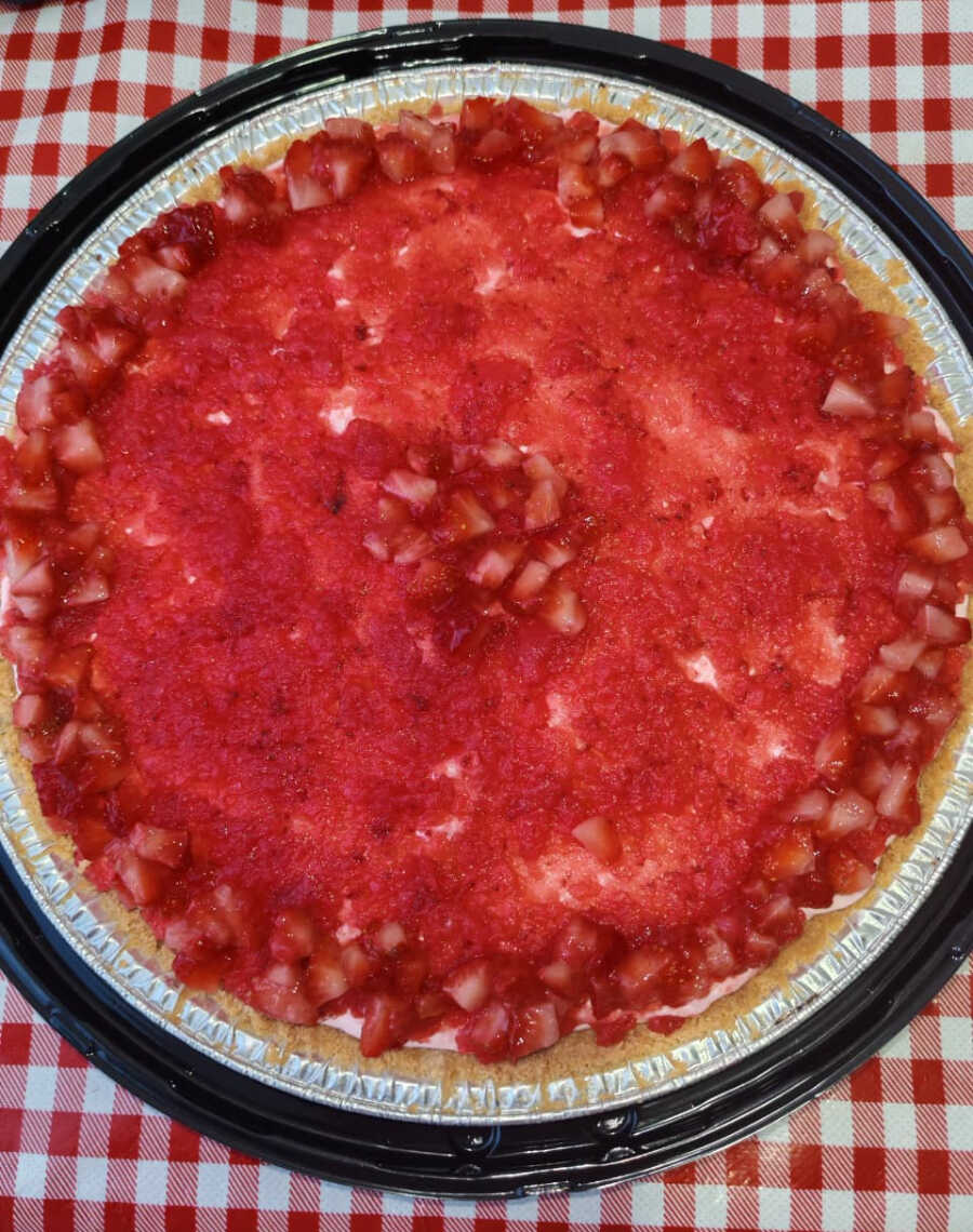 Preparación frutal.pay tipo chiskey de fresa con fresas con crema de la casa