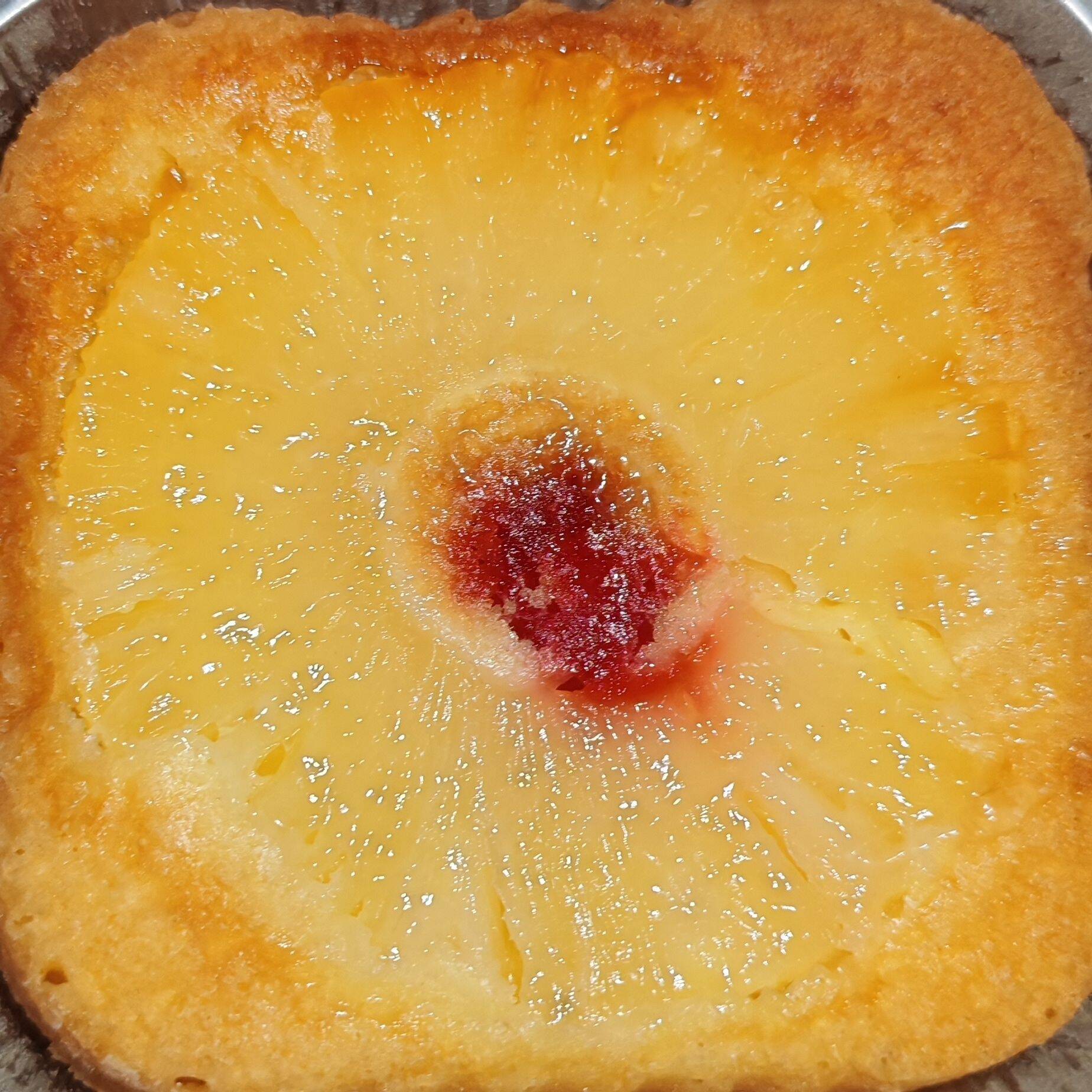 Piña, cereza y pan casero