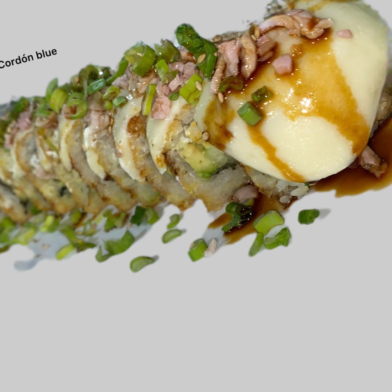 Empanizado- (d) queso crema, pollo empanizado, aguacate y pepino