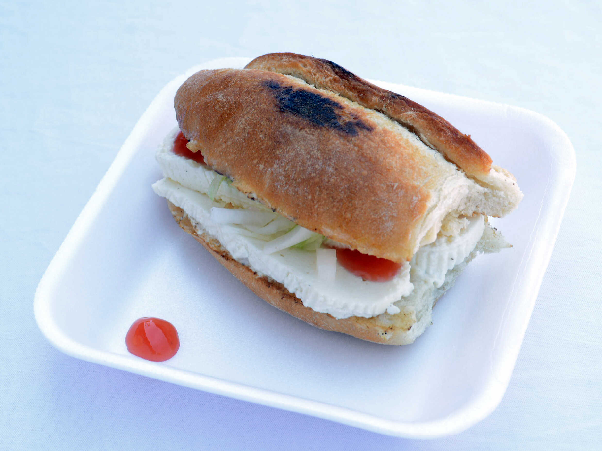 Panela, crema, lechuga, cebolla, jitomate y cátsup.