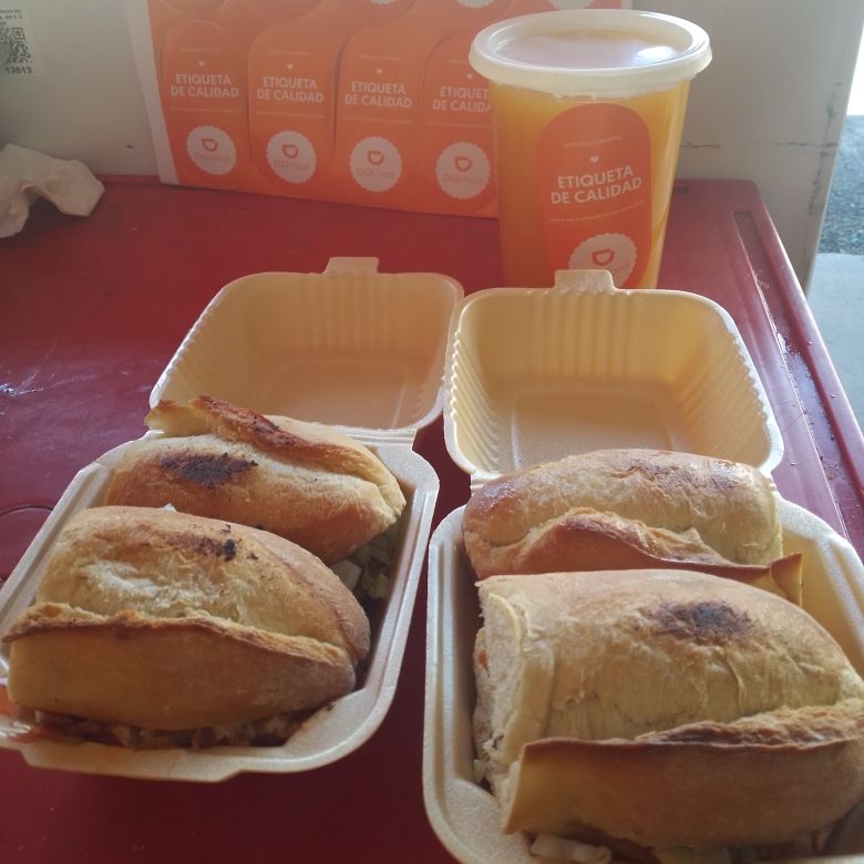 Carne, jamón, queso amarillo, mortadela, pastel pimiento, salami, lechuga, jitomate, cebolla, cátsup, crema y mostaza.