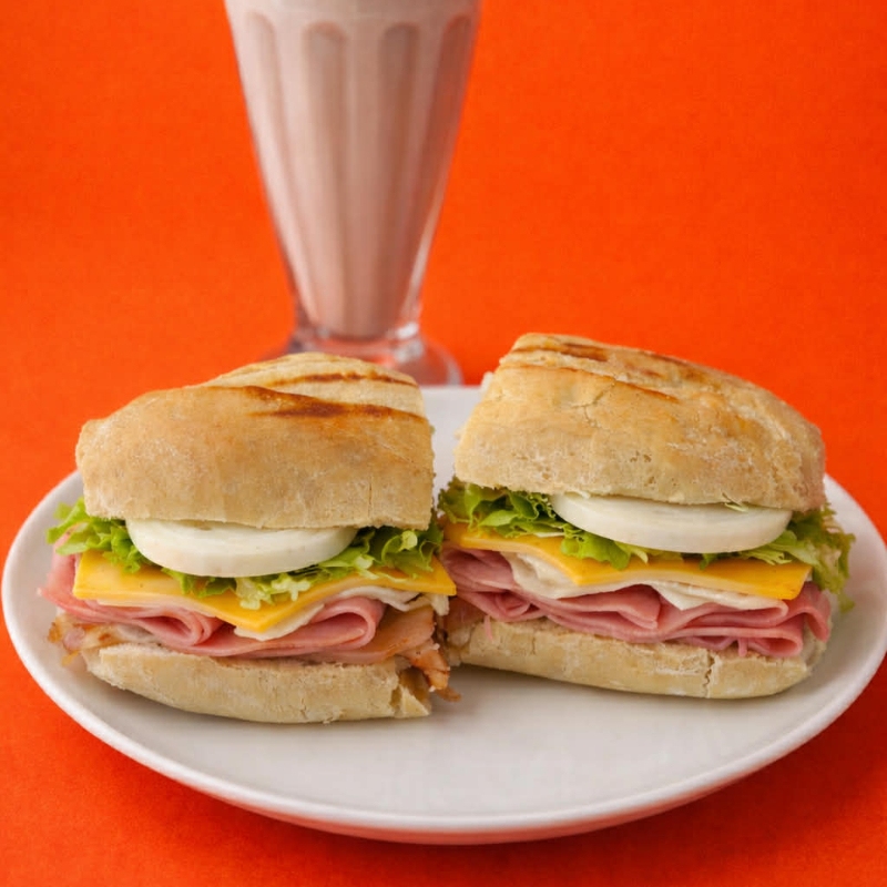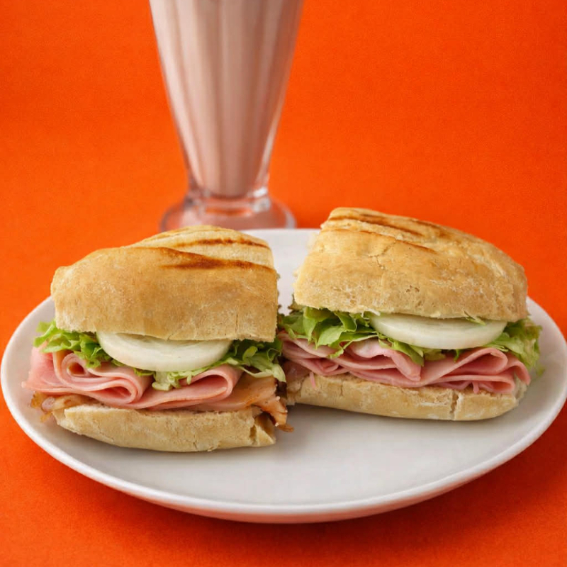 Preparado con pan blanco, jamón, lechuga, jitomate, cebolla, mayonesa, crema, mostaza y capsum.