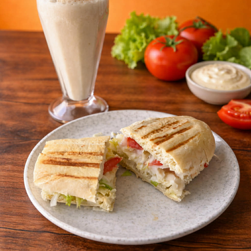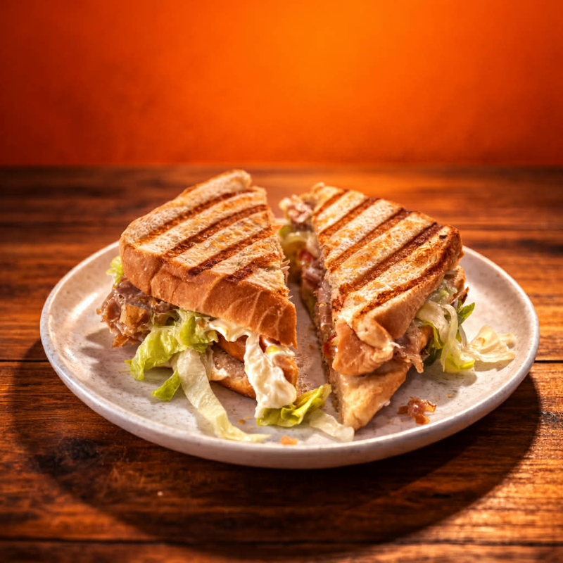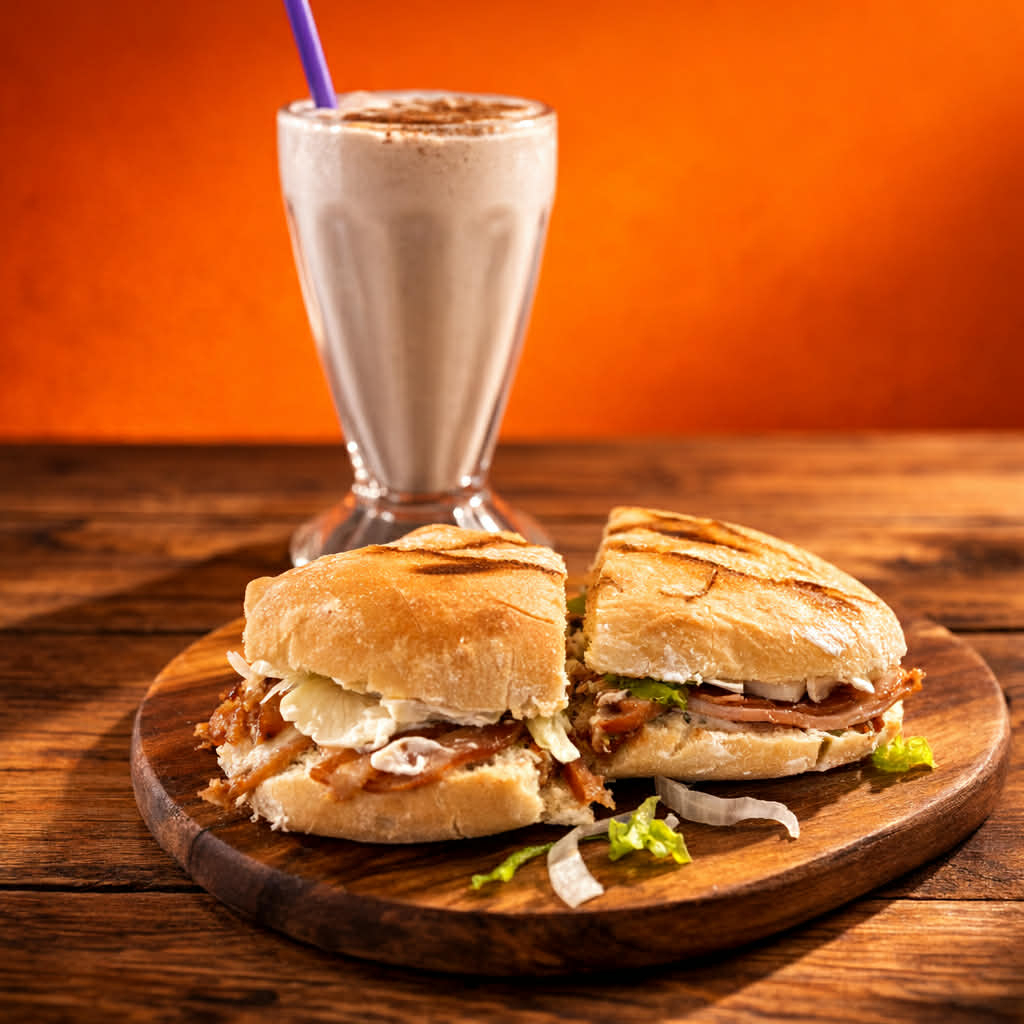 Preparado con pan blanco, panela, lechuga, jitomate, cebolla, mayonesa, crema, mostaza y capsum.