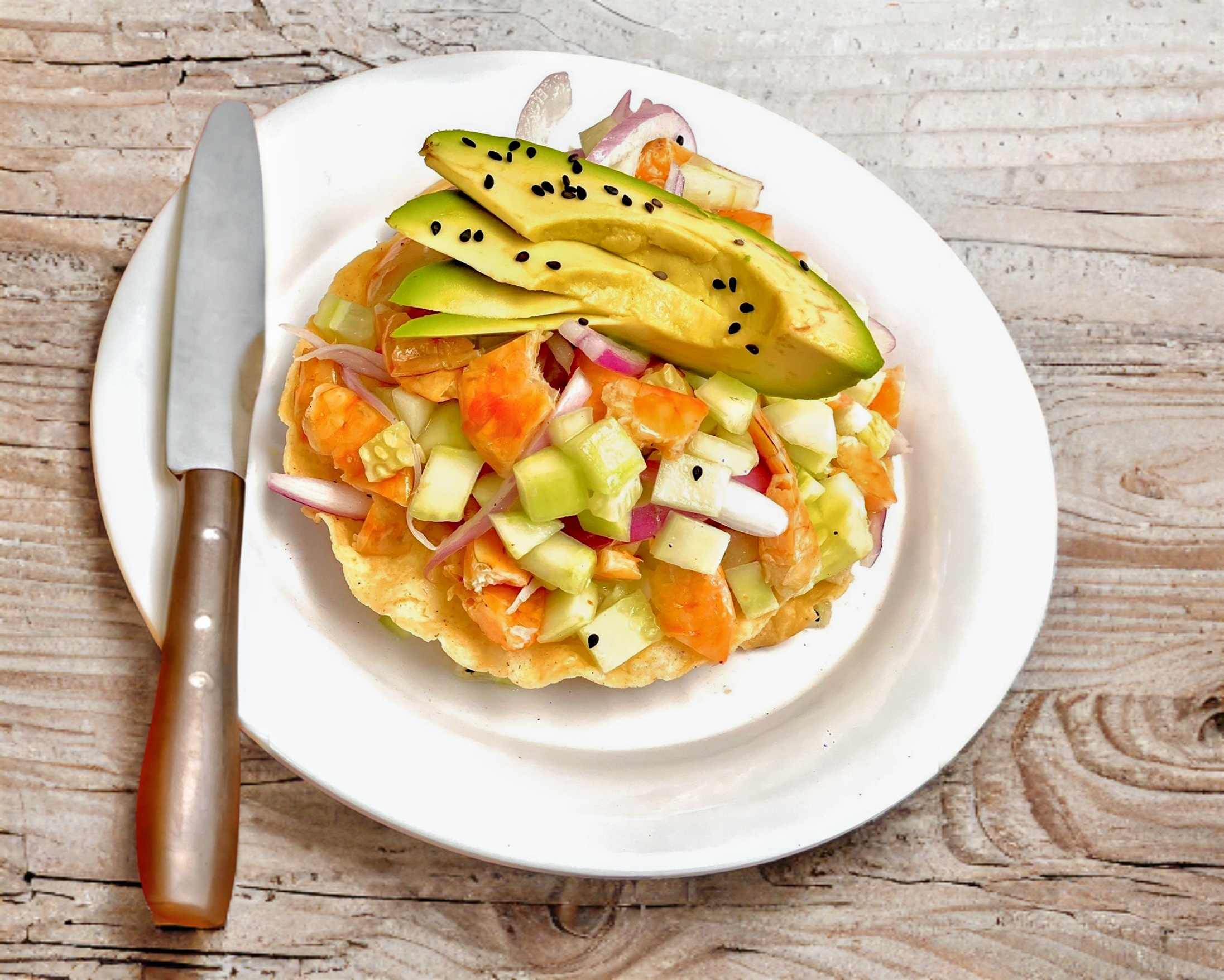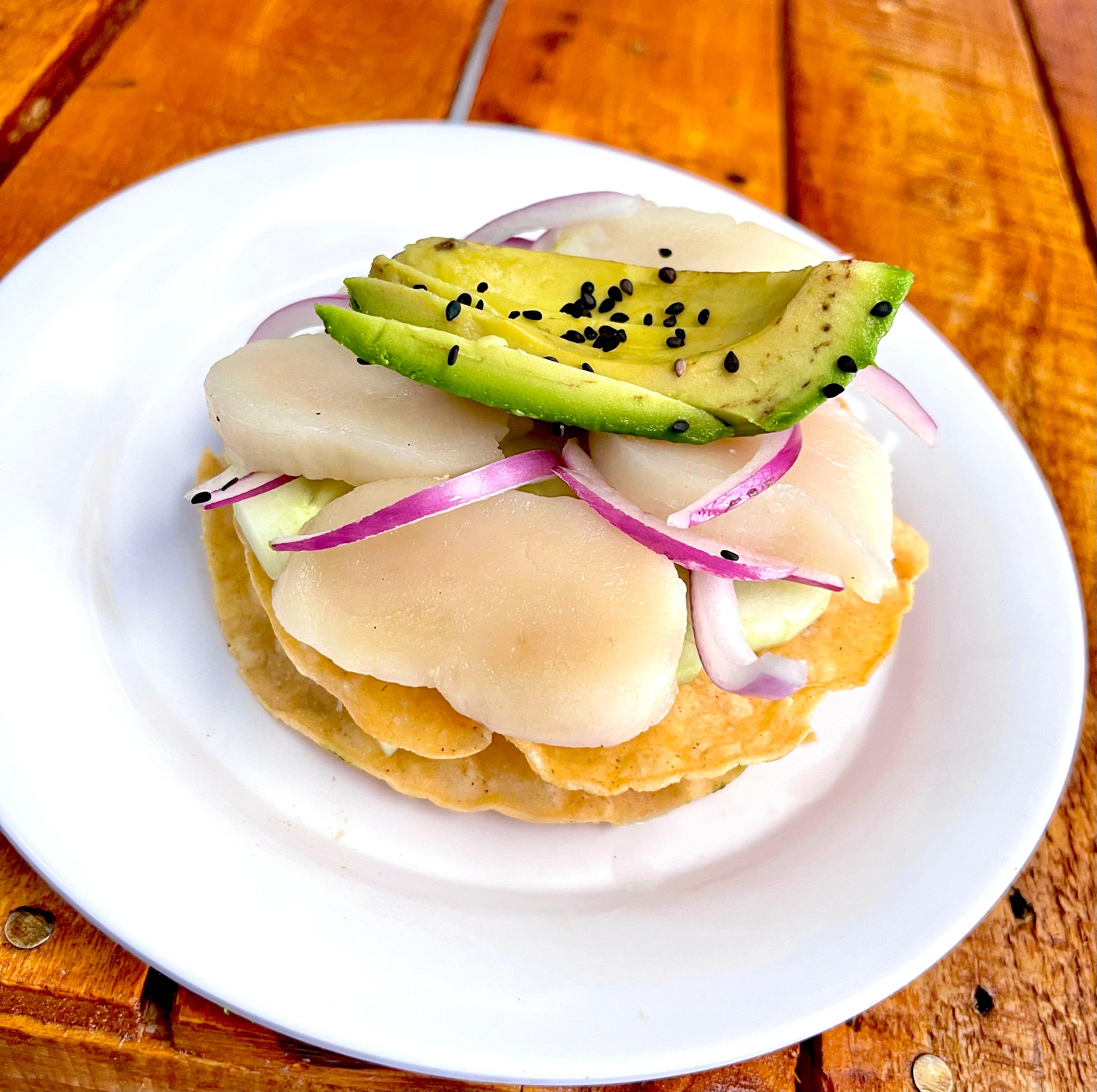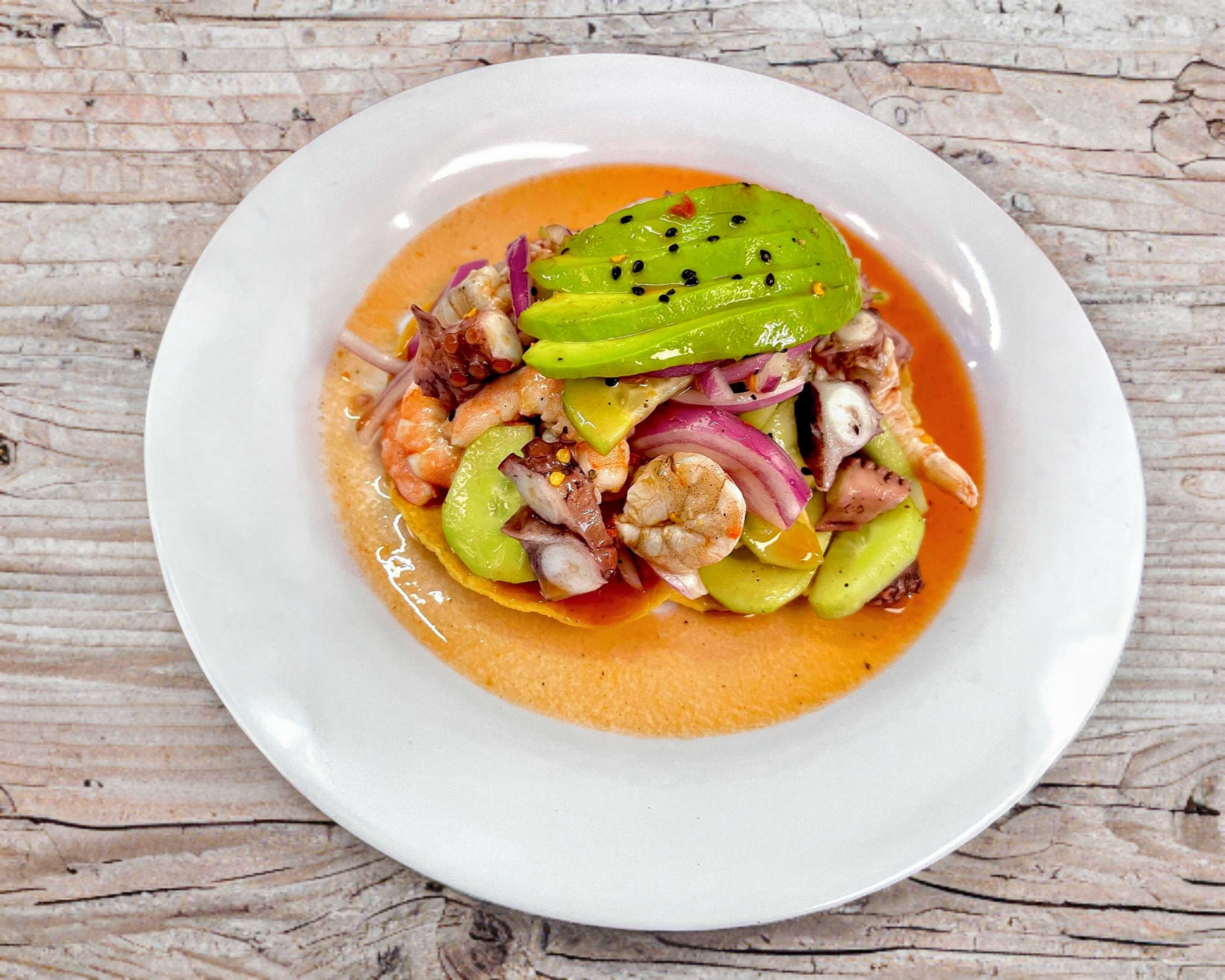 Platillo personal, camarón cocido, crudo, pulpo, incluye tostadas (un paquete de 5 tostadas).