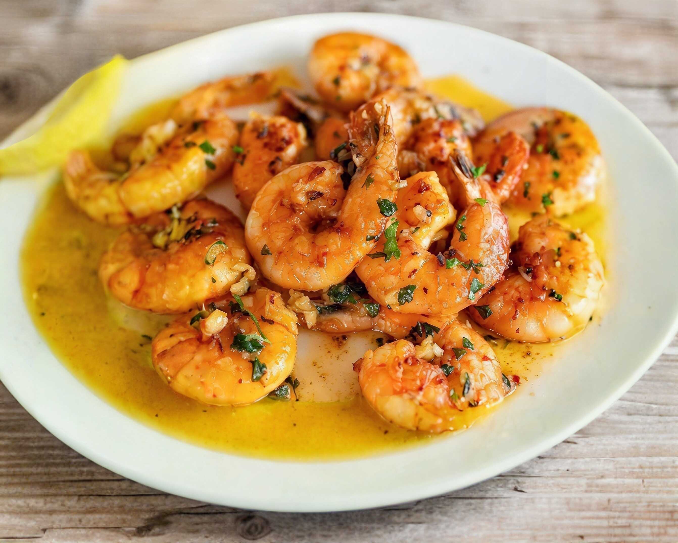Ajo, mantequilla, diabla, p/pelar, con arroz y ensalada.