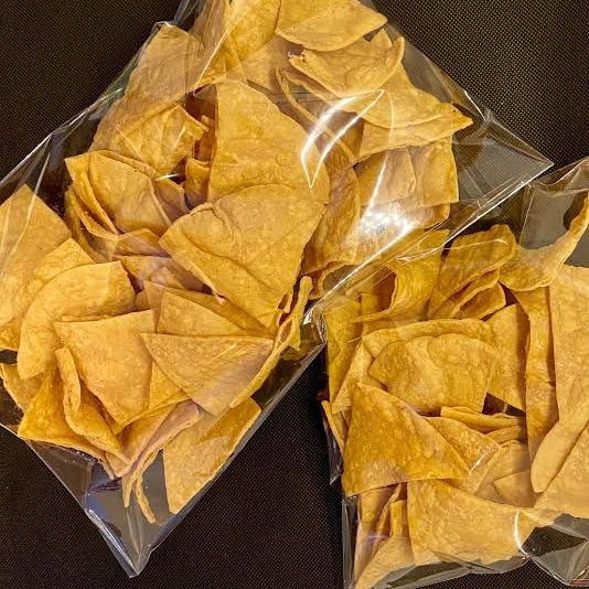 Tostitos preparados con ceviche de camarón, incluye salsas de la casa.