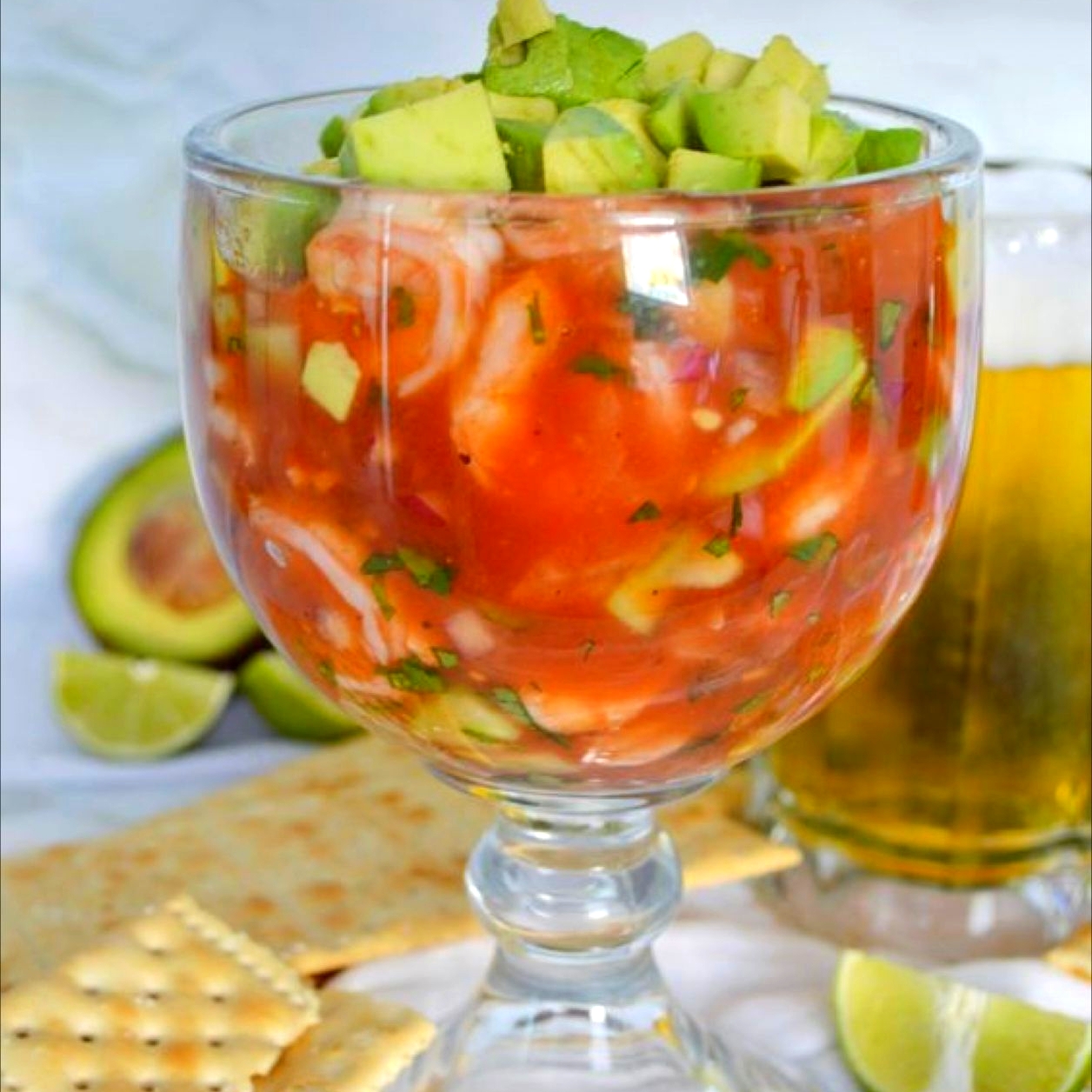 Camarón cocido, crudo o pulpo bañada en salsa especial clamato y chiltepin.