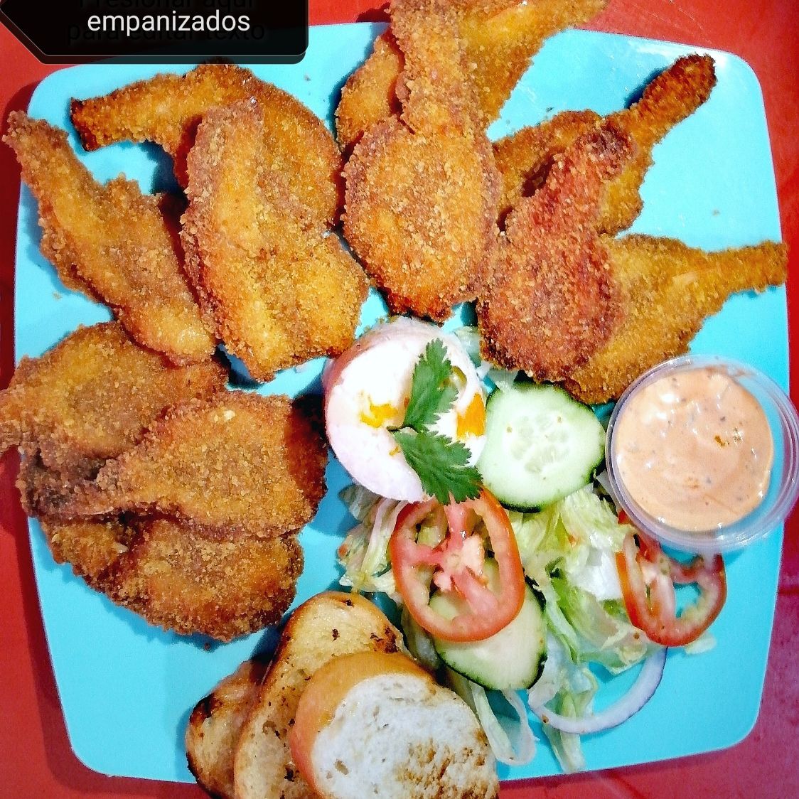 1 kg, acompañado de salsas, un paquete de 20 tostadas y limon