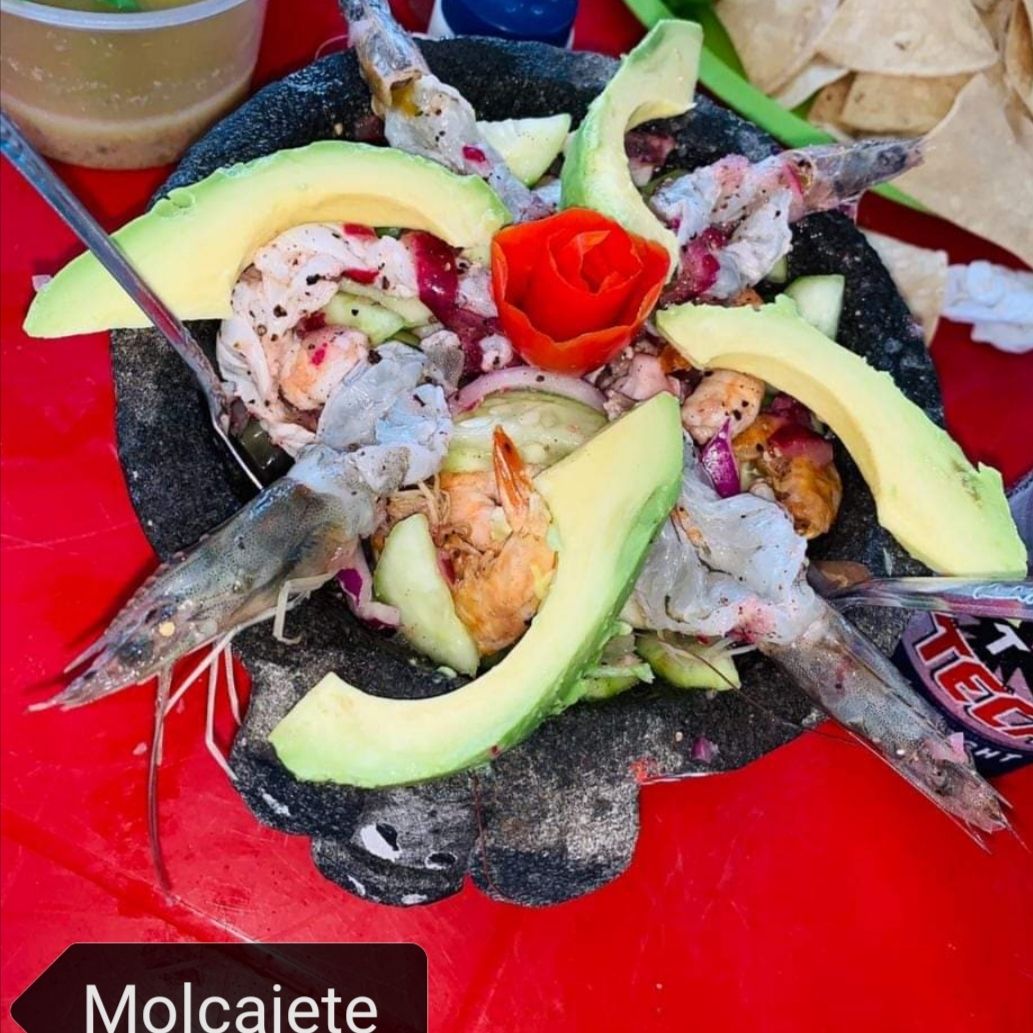 Ostión, calamar, camarón cocido, camarón crudo y clamato.