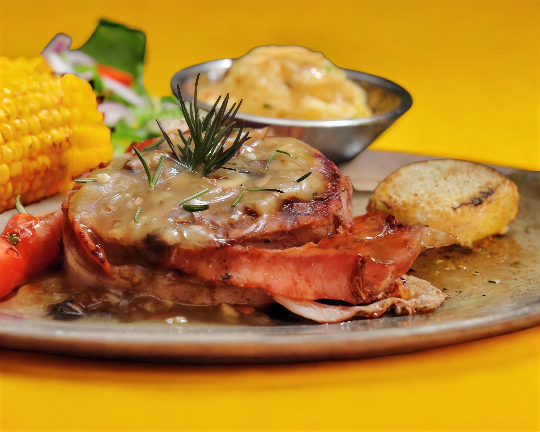 Acompañado de pure de papa con gravy y esparragos 255 gr.