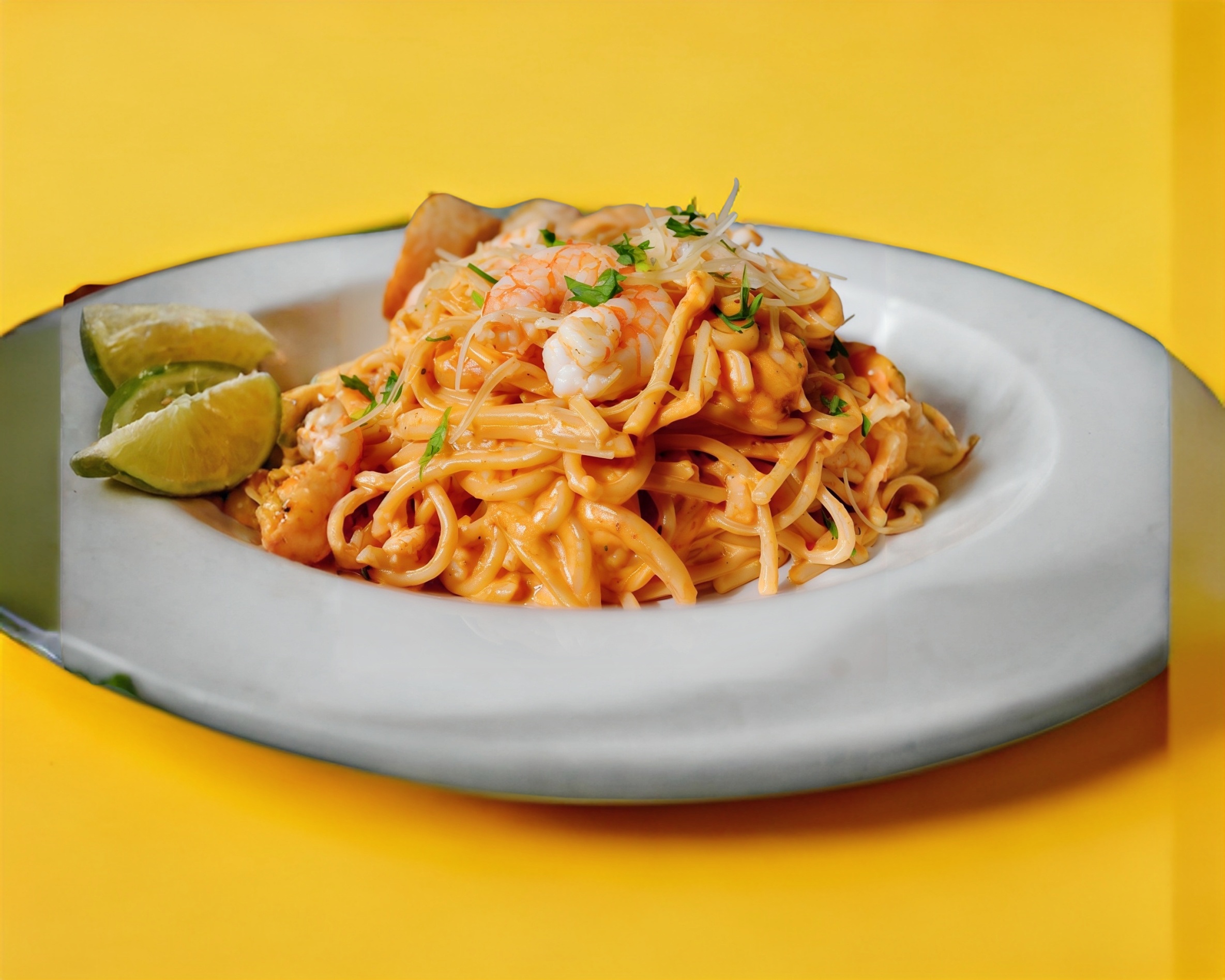 Spaguetti con camarones bañada con salsa especial de la casa. 450 gr.