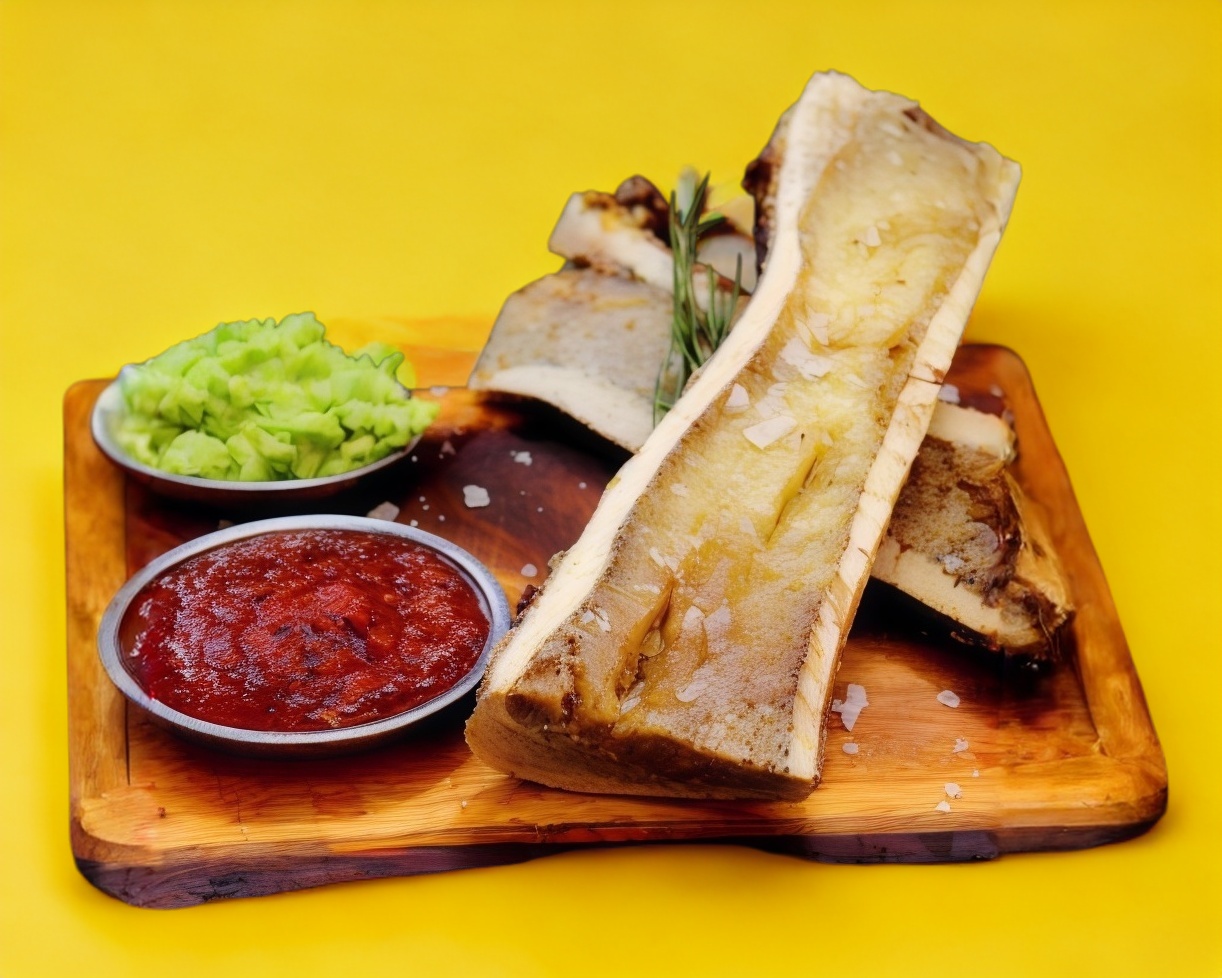 2 pz de tuétano (750gr) acompañado de guacamole, salsa y tortillas.