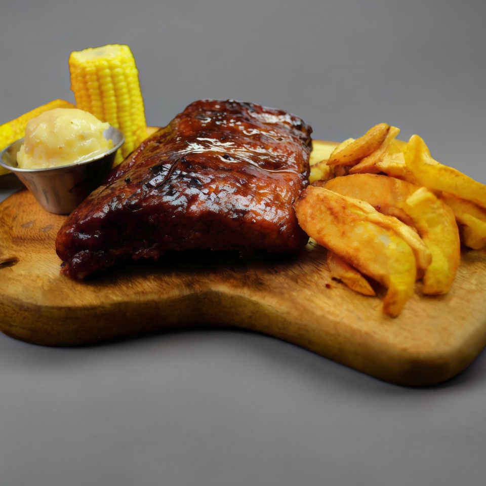 Costillas elaborada mediante un proceso de cocción a baja temperatura durante 13hrs, rematadas en el grill y bañadas con la tradicional salsa BBQ de la casa. 450 gr.
