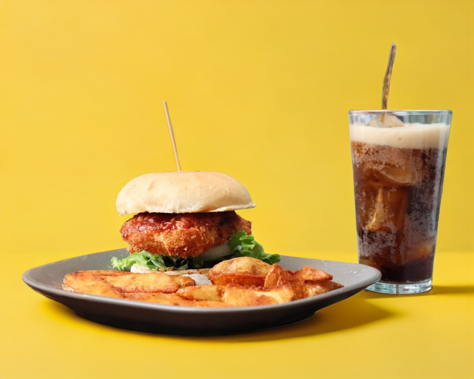 Hamburguesa de 150 gr. de pollo empanizado natural o con salsa BBQ.