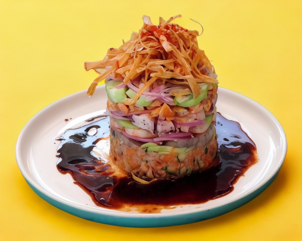 Salteado sen vegetales, en ajo y un toque de guacamole, col morado con salsa roja 100 gr (3pz).