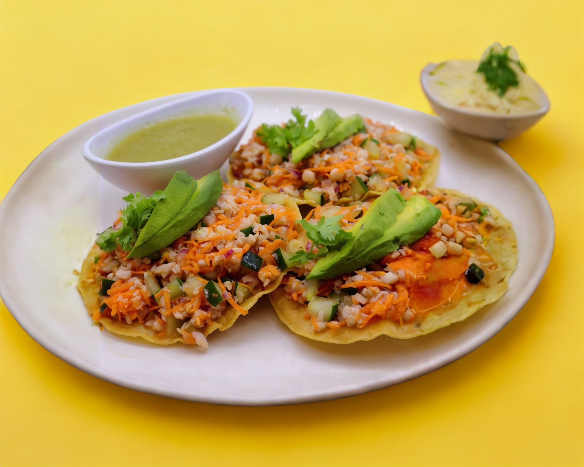 Con un toque de guacamole acompañados de salsa mexicana, col morado y salsa roja 200 gr (3pz)