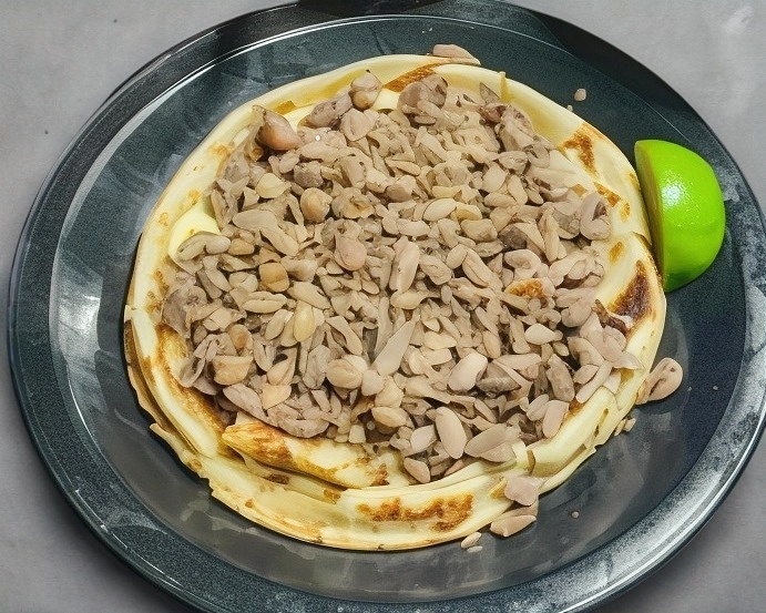 Pellizcada de maíz hecha a mano con asiento de puerco y delicioso queso gouda