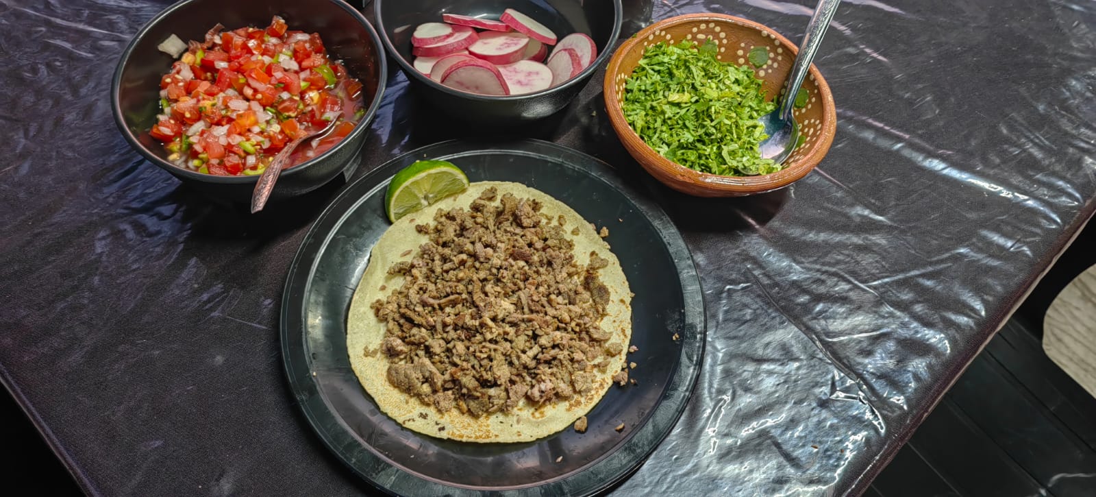 Tortilla de maíz hecha a mano, con la carne de tu preferencia (asada, tripa, arrachera y chorizo