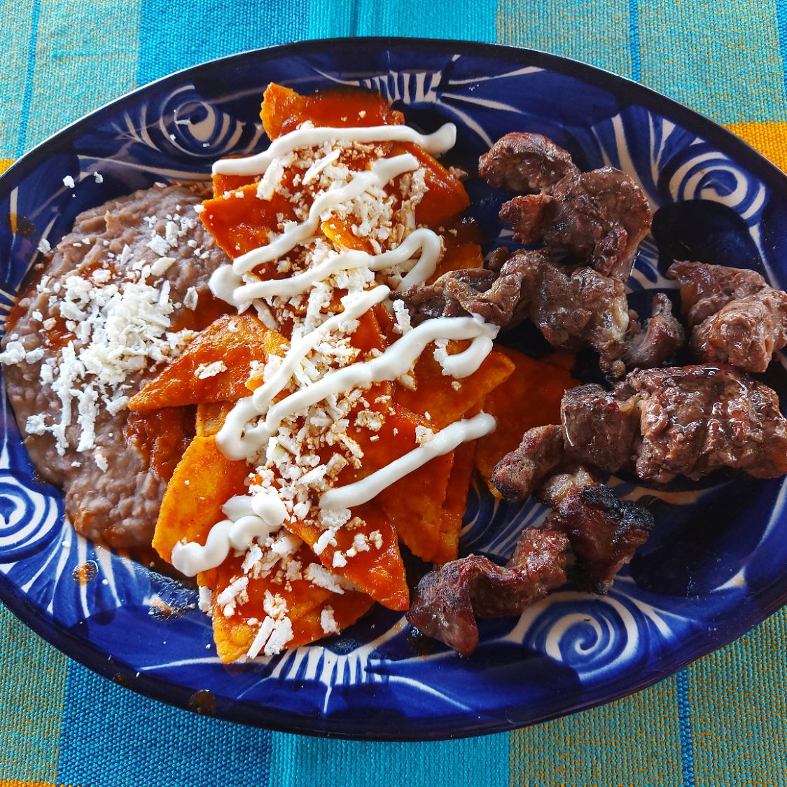 Acompañado de chilaquiles y frijolitos
