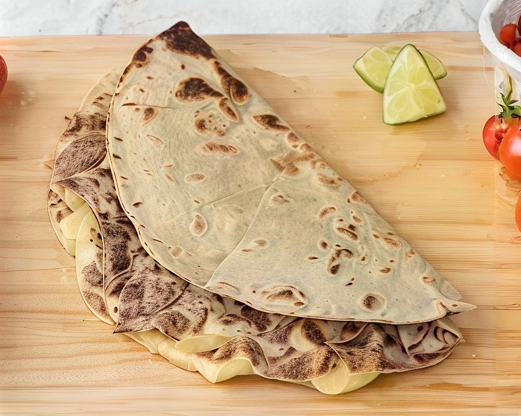 Quesadilla de tortilla grande recién hecha.