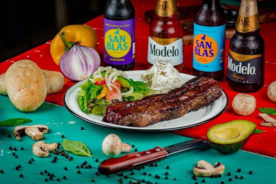 "El Sencillo y carismatico". Vacío argentino. 300 g. Domino. "Vino mexicano". Tempranillo.