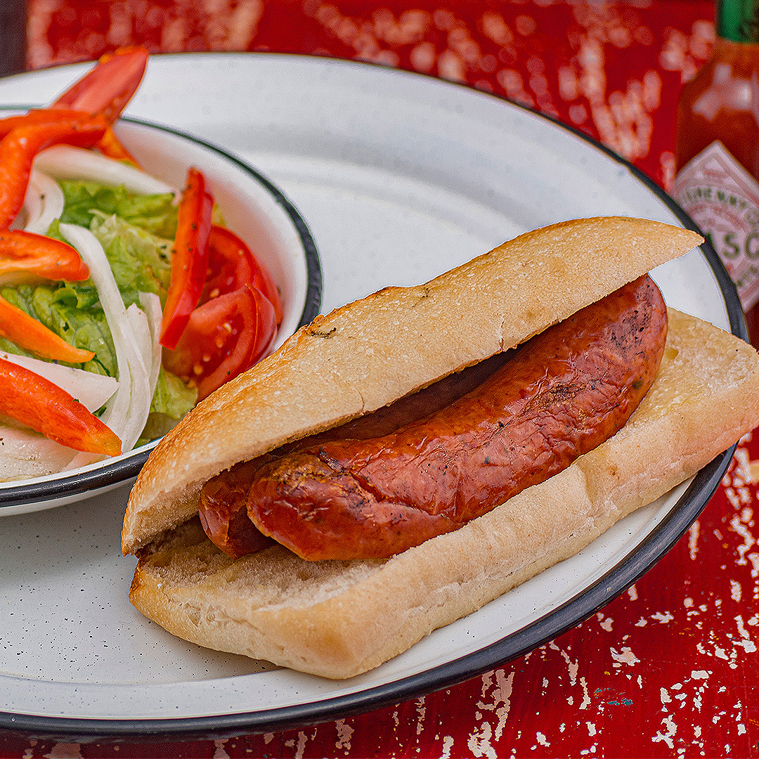Clásico choripán del barrio con tu chorizo arenal. Se acompaña de una mini ensalada argentina y chimichurri. 300 g.